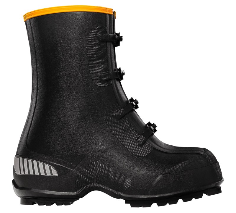 Lined with fleece for added warmth. Built with more natural rubber than most other boots, our hand-laid rubber remains durable and waterproof year after year. Our ZXT rubber is specially formulated to be ozone and tear resistant for added protection. Designed to fit over footwear with a deep, logger-style heel. More durable than zipper styles, our proven metal buckles have an adjustable fit to accommodate multiple shoe shapes. We take an outsole already built for snow and ice, then add our Carbide studs for extra traction. Studs are placed down the center of the outsole and also along the perimeter allowing for better stability even off the snow and ice. Our industrial strength carbide studs are made from an extra strong type of alloy steel. Which means they last a lot longer, even in non-snow and ice terrain.