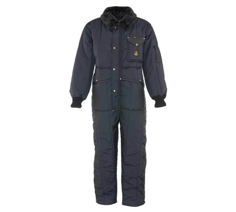 The Iron-Tuff Minus 50 Suit provides full body coverage for extreme cold protection in temperatures as low as 50 degrees below zero. The coveralls feature insulated, oversized pockets, a heel reinforcement patch and heavy duty knit cuffs for years of comfortable use. Tear- and abrasion-resistant 420 denier nylon outershell. Water-repellent, windtight finish. Reinforced brass rivets at stress points. Bounds seams seal out drafts. 2 Oversized insulated front pockets. Zipper sleeve pocket with pencil stall. Heavy-duty knit cuffs. Heel reinforcement patches. Soft fleece collar.